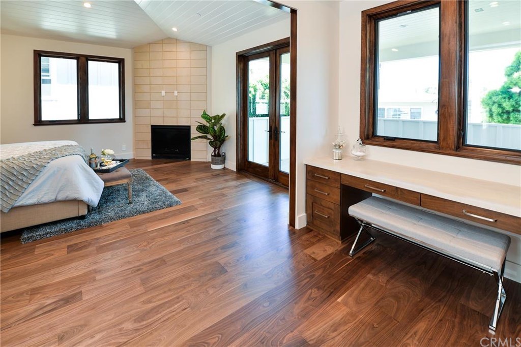 The home features 5 spacious bedrooms, each with large closets—three of which are walk-ins—offering ample storage for growing families or guests. The private primary suite is a true retreat, complete with a cozy fireplace, a large sitting area, and dramatic vaulted ceilings finished with tongue-and-groove detailing. French doors open onto a covered 110+ square foot balcony, creating the perfect spot to enjoy your morning coffee or evening breeze.